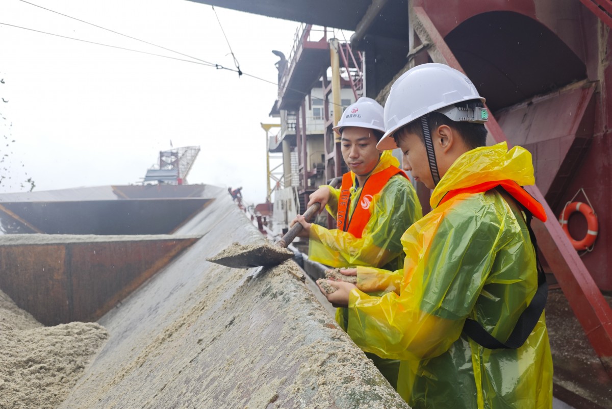 張星鵬是一位經(jīng)驗(yàn)豐富的班長,他工作能力強(qiáng),不怕吃苦,善于溝通,他2015年進(jìn)公司采區(qū)工作,參與過大飛機(jī)項(xiàng)目、小藍(lán)填方項(xiàng)目、贛撫尾閭等工程建設(shè),對內(nèi)他負(fù)責(zé)設(shè)備的安全生產(chǎn)、控制高程、船只調(diào)配、發(fā)貨計(jì)劃、砂質(zhì)監(jiān)管等工作,對外他對接水政、贛撫尾閭、中水八局等相關(guān)單位協(xié)調(diào)開采事宜。為確保贛撫尾閭工程通航任務(wù)按時完成,他從7月25日一直堅(jiān)守在開采區(qū)一線。