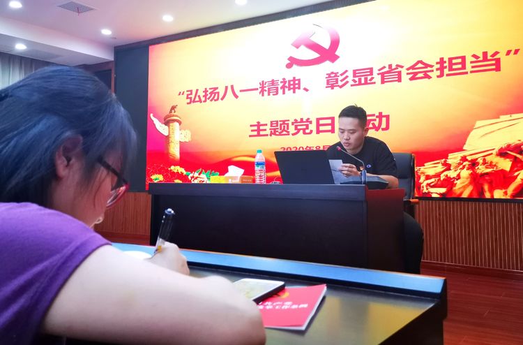 南昌贛昌砂石有限公司經(jīng)營分公司黨支部聯(lián)合機(jī)關(guān)黨支部于2020年8月3日下午在公司2206會(huì)議室召開“弘揚(yáng)八一精神、彰顯省會(huì)擔(dān)當(dāng)”主題黨日活動(dòng),活動(dòng)由經(jīng)營分公司黨支部書記熊志主持,機(jī)關(guān)黨支部、經(jīng)營分公司黨支部全體黨員,入黨積極分子參加。
