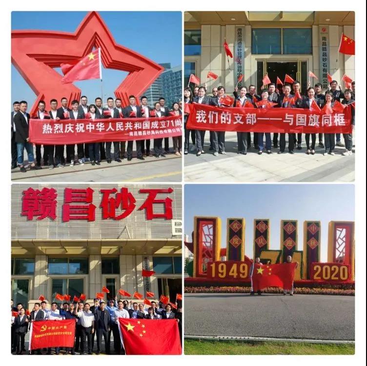 為熱烈慶祝新中國成立71周年,回顧光輝歷程、偉大成就和寶貴經(jīng)驗,激勵廣大黨員弘揚愛國主義精神,厚植愛國主義情懷,展現(xiàn)新時代黨組織和黨員的良好風(fēng)貌,切實把愛國熱情轉(zhuǎn)化為公司發(fā)展的強大動力,根據(jù)南昌市委組織部發(fā)布的“2020年10月主題黨日活動指導(dǎo)要求”和集團相關(guān)文件要求,10月9日,南昌贛昌砂石有限公司各黨支部開展了“我與國旗同框,我向祖國表白”主題黨日活動。