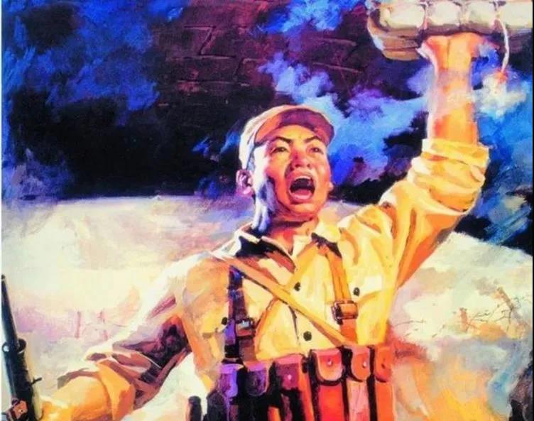 這時(shí),身后響起了嘹亮的沖鋒號(hào)聲,總攻的時(shí)間到了。大批的部隊(duì)像潮水般地涌了上來(lái)。橋型碉堡上的磚頭一塊塊被推開了,子彈像急雨一般向沖鋒部隊(duì)射去。董存瑞抬頭看了看橋頂,又看了看身后一個(gè)個(gè)倒下的戰(zhàn)友。不行,務(wù)必立刻把暗堡炸掉,否則有更多的戰(zhàn)友要倒下,也會(huì)影響整個(gè)戰(zhàn)役。想到那里,董存瑞毅然決然地將身子向左一靠,站在橋中央,左手托起炸藥包,緊緊貼住暗型堡壘,右手猛地一拉導(dǎo)火索,毅然挺立,紋絲不動(dòng),像是一尊雕塑。就聽董存瑞高聲喊道:“為了新中國(guó),沖啊!”剎那間,一聲巨響,地動(dòng)山搖。敵人的暗型橋堡被炸得粉碎。