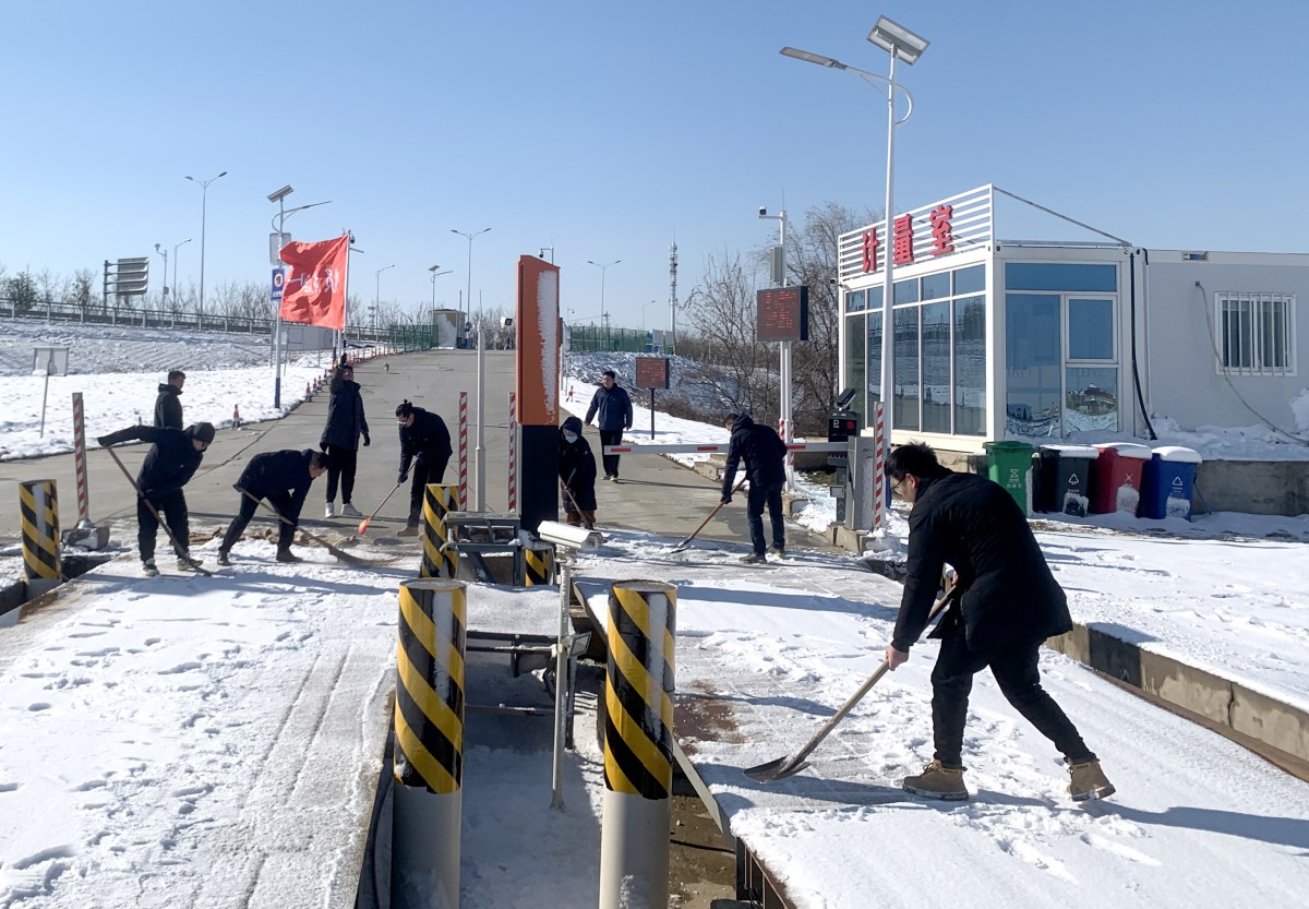 ▲經(jīng)營黨支部應(yīng)急突擊隊清理砂場地磅積雪