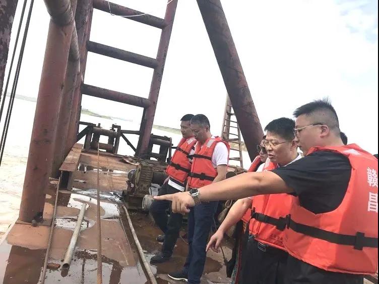 最后,劉順保一行來到了南贛2號(hào)采區(qū),登上采砂船實(shí)地查看了采區(qū)開采、汛期的生產(chǎn)安全、防汛措施等情況,并提出幾點(diǎn)要求:一、要在安全生產(chǎn)的前提下,提高開采量;二、要提前構(gòu)建應(yīng)急方案,在設(shè)備損壞的情況下,第一時(shí)間換上替補(bǔ)設(shè)備;三、要提質(zhì)增效,盡快打開作業(yè)面,增加可開采設(shè)備數(shù)量。