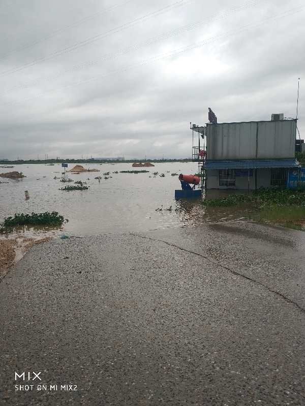 連日的暴雨,致使砂場(chǎng)場(chǎng)地大部分存在積水,公司經(jīng)開(kāi)國(guó)集砂場(chǎng)利用砂堆作為圍堰,有效的防止水灌入場(chǎng)地;對(duì)于場(chǎng)地內(nèi)澇情況,待雨勢(shì)稍弱時(shí),設(shè)置抽水機(jī)將場(chǎng)內(nèi)積水及時(shí)排出。