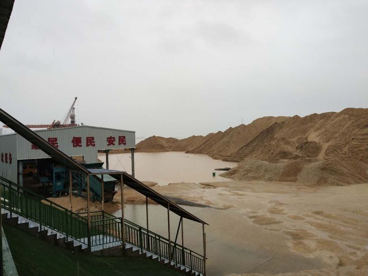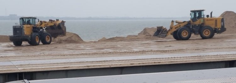 東新砂場(chǎng)采用下砂至砂場(chǎng)缺口處的方法,堵住不斷上漲的河水,防止河水漫入場(chǎng)地;鏟車鏟砂修建圍堰,防止河水灌入砂場(chǎng)場(chǎng)地。