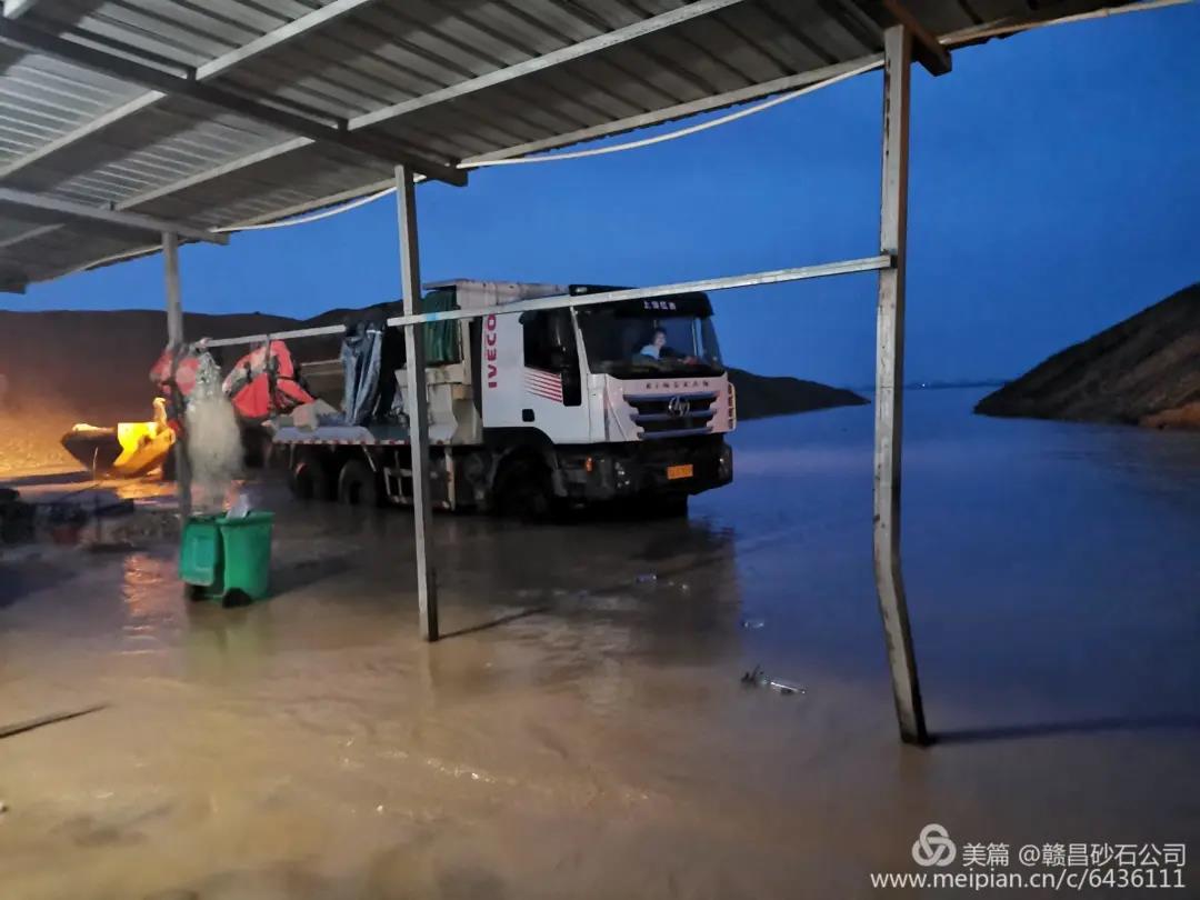 在地磅無法工作的情況下,發(fā)貨員一直站在水中指揮記錄著車輛運輸情況,公司各部門人員全力支援一線。截止2020年7月11日8時,楊柳洲經(jīng)營點共向新建區(qū)發(fā)送礫石87車,約4350噸。
