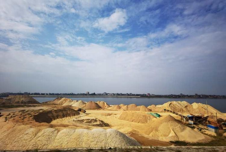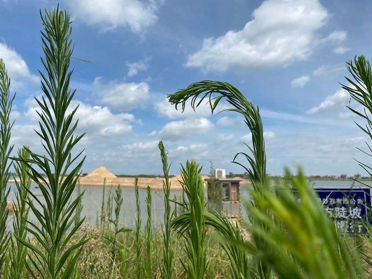 我初來砂場(chǎng)時(shí),正是盛夏時(shí)節(jié)。那一天天氣晴朗,萬里無云。站在堤上放眼望去,砂場(chǎng)的風(fēng)景一覽無遺。