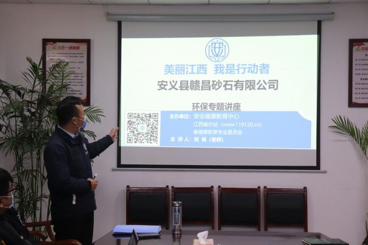 為提高企業(yè)對環(huán)境保護法律法規(guī)的認(rèn)識及環(huán)保風(fēng)險應(yīng)對能力,1月22日下午,安義縣贛昌砂石有限公司聯(lián)合江西省安全健康教育中心安義工作組的培訓(xùn)老師開展以“美麗江西,我是行動者”為主題的公益知識普及講座,安義縣贛昌砂石有限公司常務(wù)副總經(jīng)理黃蒲攜中層、一線班長參加此次講座。