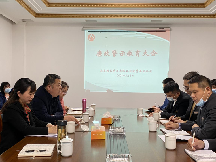 3月5日,贛昌砂石進(jìn)賢縣分公司召開了全員廉政警示教育大會(huì),此次大會(huì)由集團(tuán)紀(jì)檢三組組長萬愛梅宣講,贛昌砂石公司總經(jīng)理助理蔡安煜,經(jīng)營黨支部書記熊志,監(jiān)審部部長助理涂琳,進(jìn)賢縣分公司全體中層干部及員工參會(huì)。