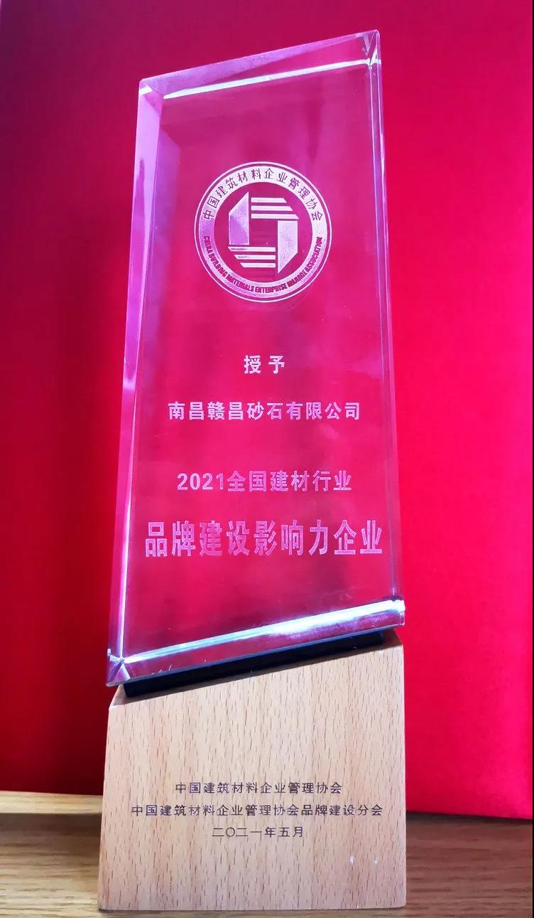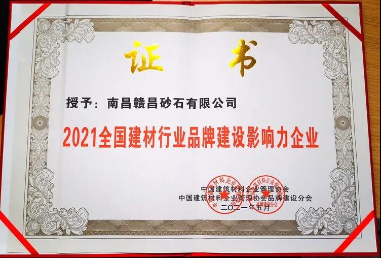 中國建筑材料企業(yè)管理協(xié)會(huì)、中國建筑材料企業(yè)管理協(xié)會(huì)品牌建設(shè)分會(huì)共同在大會(huì)上為“2021全國建材行業(yè)品牌建設(shè)影響力企業(yè)”頒發(fā)證書。南昌贛昌砂石有限公司榮獲“2021全國建材行業(yè)品牌建設(shè)影響力企業(yè)”榮譽(yù)稱號。