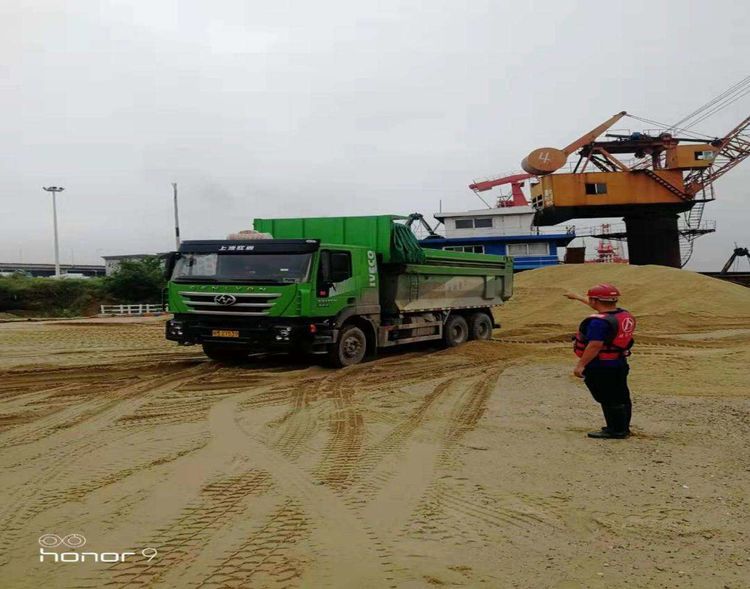 部分被淹的砂場,重要物資及磅房已全部轉(zhuǎn)移至安全地帶。對于正常發(fā)貨的砂場,雖砂場部分場地被浸水,但也安排鏟車清理出一塊安全區(qū)域供砂場正常發(fā)貨使用。同時,為了保證運輸車輛安全有序地進出,安排專人指揮車輛以做好砂場安全生產(chǎn)工作,在砂場合適位置也設(shè)立了水位觀測標(biāo)桿,安排好班組人員每兩個小時觀測記錄一次。