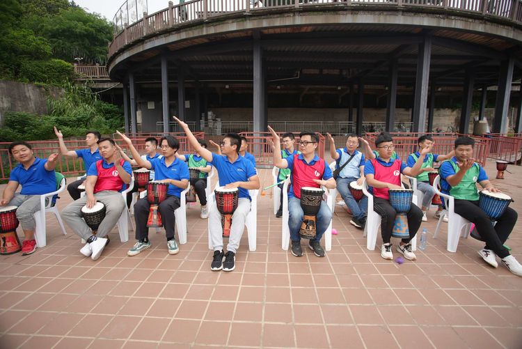最精彩的部分是由專業(yè)老師帶領(lǐng)學(xué)員體驗非洲鼓的團建樂趣。學(xué)員們通過共奏樂章,感受用音樂溝通協(xié)作,并共同合作奏響了公司司歌“砂礫之歌”,伴隨音樂鼓聲嘹亮,響徹山谷,效果振奮人心。