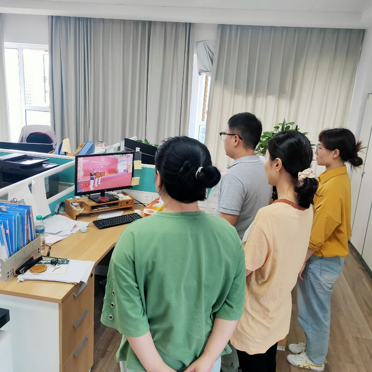 市政公用集團(tuán)黨委委員,贛昌砂石公司黨總支部書記、董事長劉順保,總經(jīng)理陳鴻攜全體領(lǐng)導(dǎo)班子成員及全體員工觀看了此次大會(huì)直播,大家觀看后,深受感觸。
