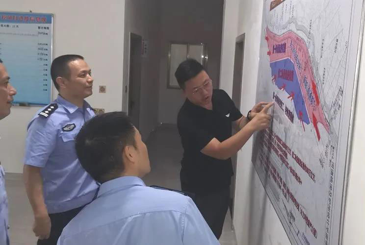 9月29日上午,南昌市公安局新建分局黨委委員、副局長劉龍興一行前往贛撫尾閭砂方開挖項目現(xiàn)場調研指導安全維穩(wěn)工作,生產(chǎn)部(贛撫尾閭項目部)部長熊志、新建區(qū)分公司(新贛開采部)負責人鐘華及相關人員陪同。
