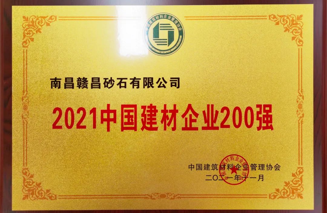 同年12月,榮獲中國建筑材料企業(yè)管理協(xié)會、中國建筑材料企業(yè)管理協(xié)會品牌建設分會頒發(fā)的“2021中國建材企業(yè)200強”榮譽稱號。