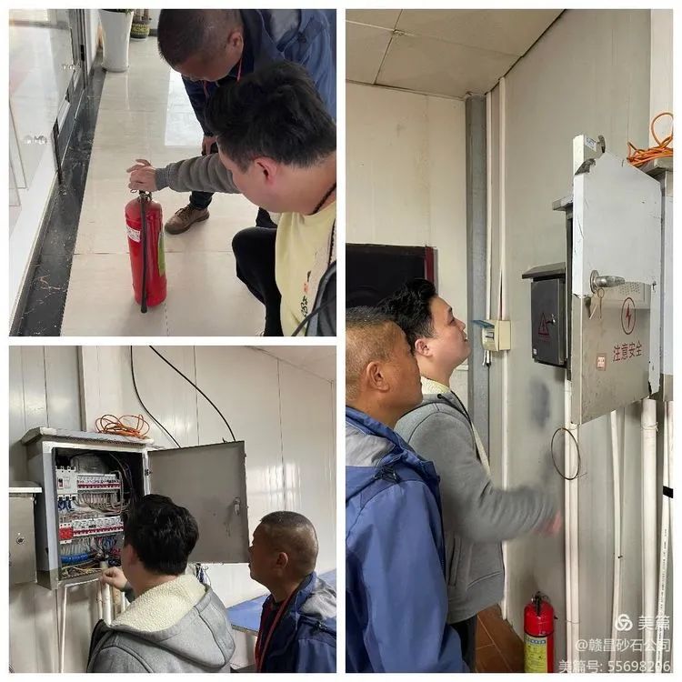 首先,砂場班組人員針對砂場道路照明及辦公區(qū)域所有的用電箱老化破損等情況進行了隱患排查工作,并逐一檢查了辦公區(qū)域內(nèi)消防設(shè)施,對超出使用期限、破損的設(shè)施及時進行更換處理。在檢查過程中,付軍再三叮囑要以預(yù)防為主,防消結(jié)合的安全意識,堅持做好每日檢查,發(fā)現(xiàn)隱患問題及時整改到位。