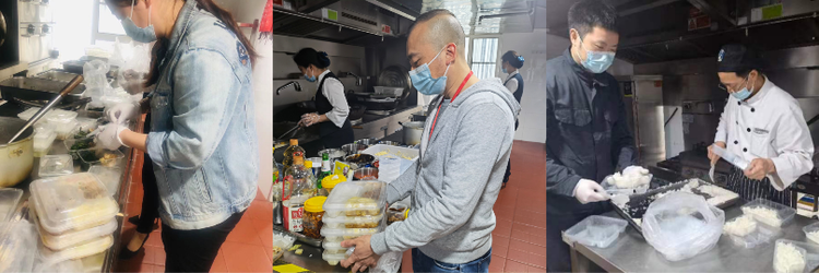 為了防止人員聚齊,近段時(shí)間食堂未開放堂食,采取打包的形式為員工供應(yīng)早午餐。考慮到菜品提前太久打包會(huì)放涼及串味,每到了用餐的時(shí)間段,綜合部在崗職工都紛紛上陣,協(xié)助打包盒飯,提高盒飯打包速度,確??焖偻瓿伤泻酗埖拇虬ぷ鳎皶r(shí)將打包好的盒飯發(fā)放至員工手中,不影響菜品口感。