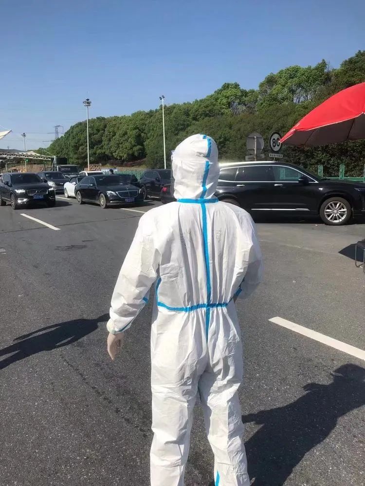 隨著微信群中的消息閃爍,13:53“已到達(dá)集合地點(diǎn)”、13:57“已到達(dá)集合地點(diǎn)”、13:59“已到達(dá)集合地點(diǎn)”、14:00“從進(jìn)賢出發(fā),正在路上”。大家以最快的速度從各處趕來(lái)集結(jié),隨后便在現(xiàn)場(chǎng)工作人員的指導(dǎo)下,熟悉收費(fèi)口出入政策要求,并“全副武裝”換上了“大白”防疫服。