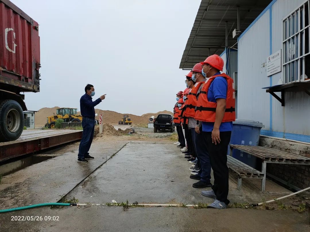 此次演練參照《東新片區(qū)砂場(chǎng)防汛應(yīng)急預(yù)案》執(zhí)行,模擬砂場(chǎng)水位到達(dá)警戒線后,如何快速有效的轉(zhuǎn)移砂場(chǎng)重要物資以及保障砂場(chǎng)人員有序安全撤離,東新片區(qū)副經(jīng)理萬(wàn)長(zhǎng)征,現(xiàn)場(chǎng)講解了此次防汛應(yīng)急演練的目的,過(guò)程以及人員分工。