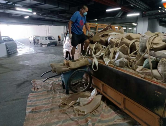 上午,高新區(qū)瑤湖花園二期小區(qū)內(nèi),配送司機劉師傅將配送車穩(wěn)穩(wěn)地??吭诳蛻魳窍潞螅?jīng)客戶驗貨完畢,搬運工謝師傅和王師傅立即將翻斗車放好,卸砂,搬運,將一袋袋平價砂送進客戶周先生家中,他們忙碌的身影,成了中秋佳節(jié)最美的一道風景,他們用實際行動堅守心中別樣的“圓”。