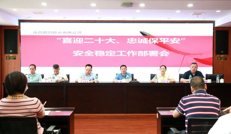 9月27日下午,南昌贛昌砂石有限公司召開“喜迎二十大、忠誠保平安”安全穩(wěn)定工作部署會;南昌市交通投資集團有限公司綜合行政組組長、原南昌水投高管,贛昌砂石公司總經理陳鴻出席并講話,其他在家領導班子成員、各部門負責人及一線分管安全中層參加會議。