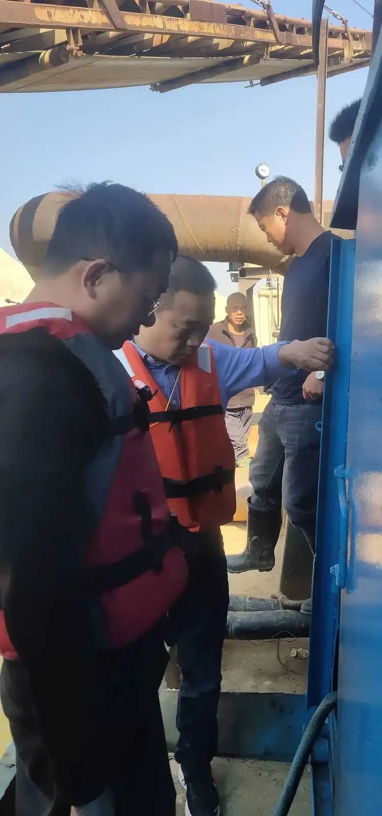 首先,檢查人員對采區(qū)的采挖設備進行逐一上船檢查工作,對采挖設備、消防設備、救生設備及船只用電設施等進行了詳細的檢查,并對相關人員展開了消防演練實操實訓。