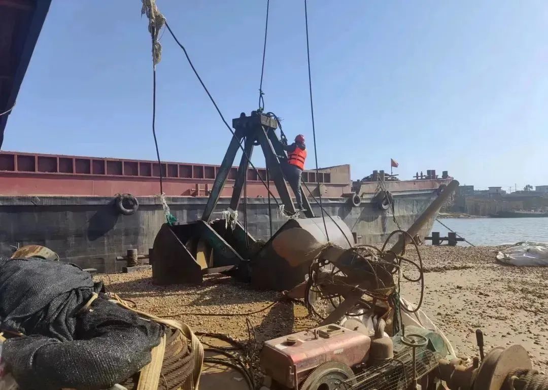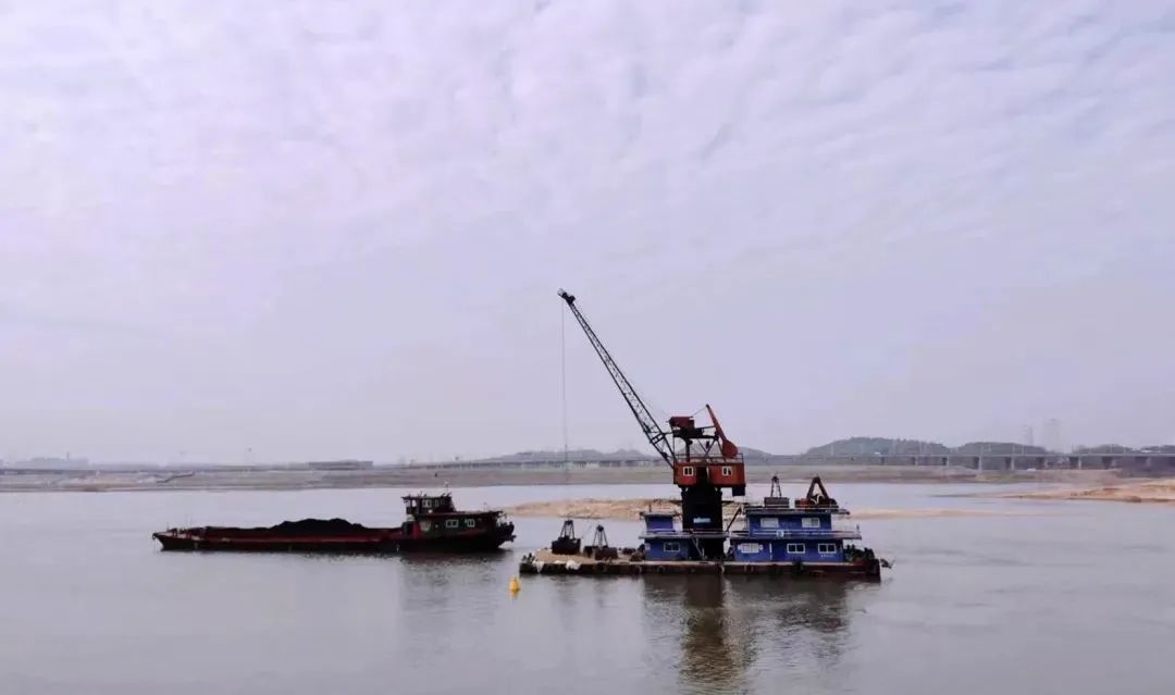 接到任務(wù)后,贛昌砂石公司董事長唐曉飛高度重視,立即召集各相關(guān)部門就該抬水工程項目施工方案進(jìn)行會議討論,結(jié)合以往經(jīng)驗,最終決定該項工程采用水上浮吊進(jìn)行作業(yè),將河道內(nèi)砂石吊裝上船再運往集中卸貨碼頭,這樣既可以解決無法容納大型挖沙設(shè)備的問題,也能以借助浮吊可360度作業(yè)的靈活性將河道內(nèi)砂石、淤泥等混合料清理干凈,唯一不足的就是效率較慢,但此方案可以保障航運產(chǎn)業(yè)的運作,保證上游發(fā)電站水路運煤及南昌市在建的洪州大橋經(jīng)水路原料配送等工程產(chǎn)業(yè)的運轉(zhuǎn)。