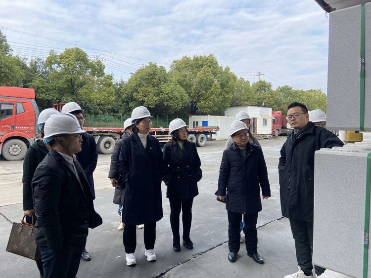 在杭加新材公司,陳鴻一行前往廠區(qū)實(shí)地察看了其主營(yíng)產(chǎn)品AAC板和具體生產(chǎn)流程工藝等,并與對(duì)方負(fù)責(zé)人就AAC板材中砂石使用情況,以及建材上下游產(chǎn)業(yè)鏈未來(lái)發(fā)展趨勢(shì)進(jìn)行了充分的探討交流。