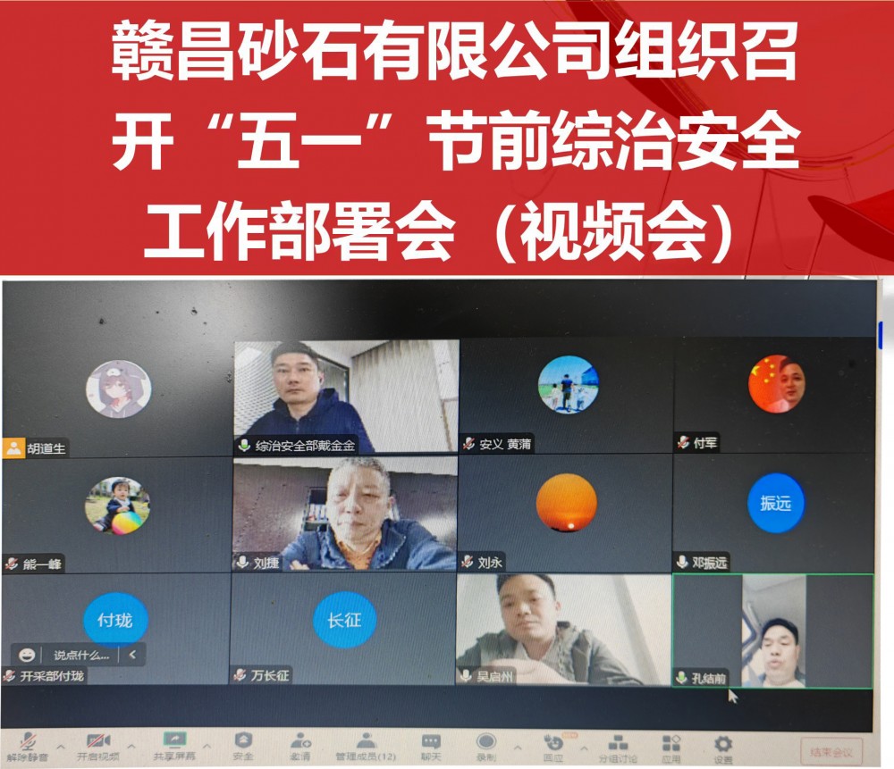 4月28日下午,贛昌砂石公司組織召開“五一”節(jié)前綜治安全工作部署視頻會(huì),公司副總經(jīng)理劉捷出席并講話,綜治安全部及各一線分管安全相關(guān)人員參加。