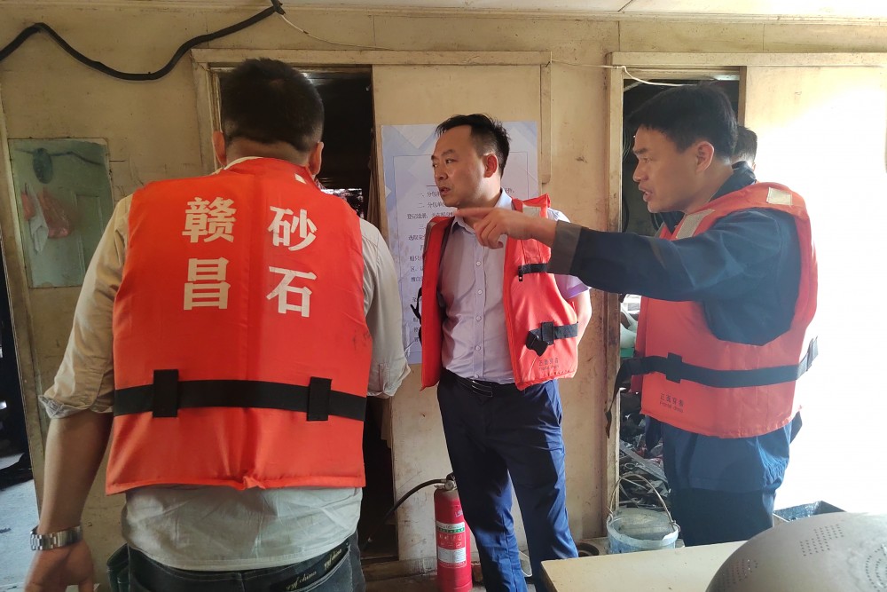張軍茂一行登上采砂船查看了畫(huà)眉咀料場(chǎng)現(xiàn)場(chǎng)作業(yè)情況,與采區(qū)分管中層、班長(zhǎng)溝通,詳細(xì)了解近期現(xiàn)場(chǎng)開(kāi)采情況和存在的問(wèn)題。