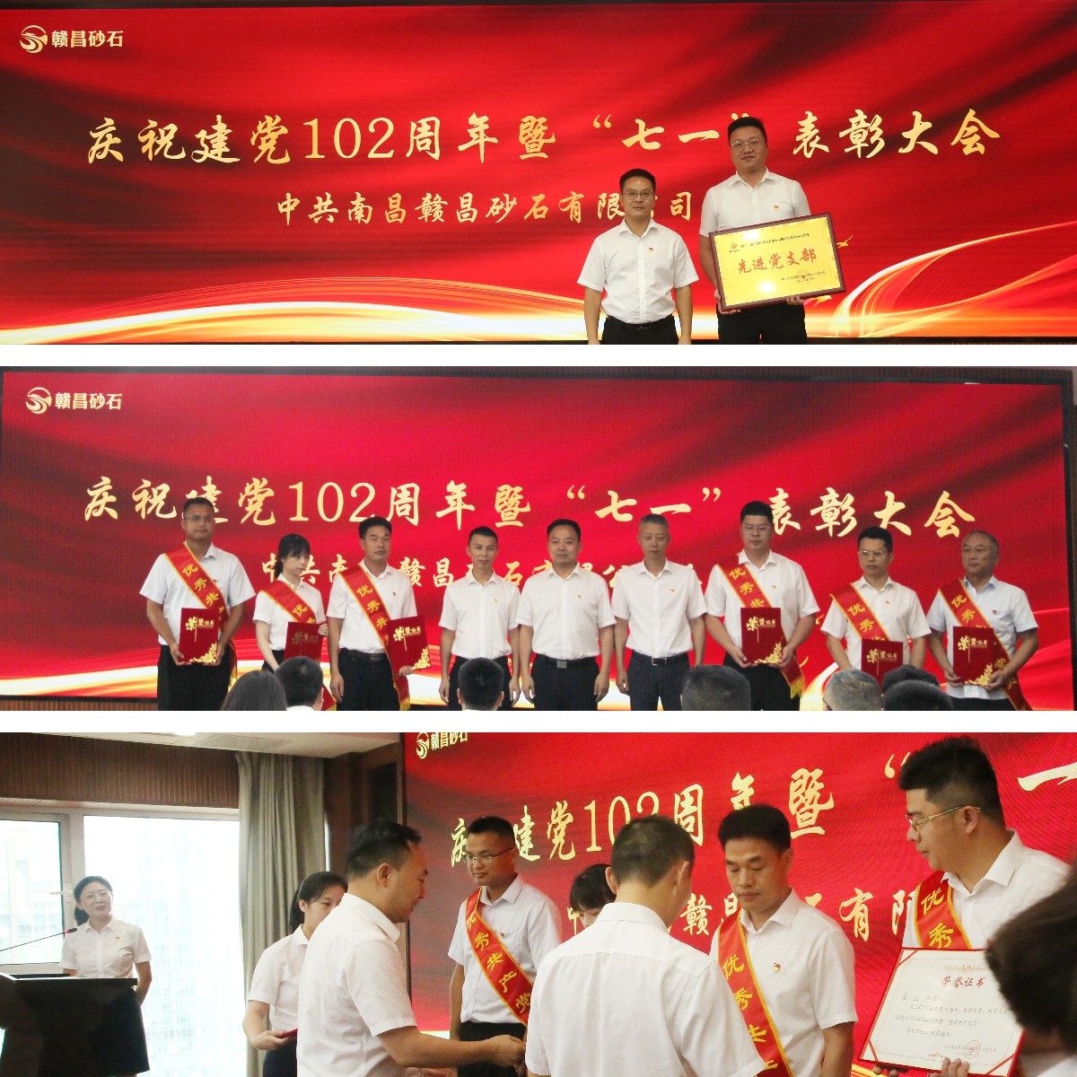 為深入學(xué)習(xí)貫徹黨二十大精神,熱烈慶祝中國共產(chǎn)黨成立102周年,進(jìn)一步教育引導(dǎo)各基層黨組織和廣大黨員繼承發(fā)揚(yáng)黨的光榮傳統(tǒng)和優(yōu)良作風(fēng),6月30日下午,南昌贛昌砂石有限公司黨委組織開展了慶祝建黨102周年暨“七一”表彰大會。