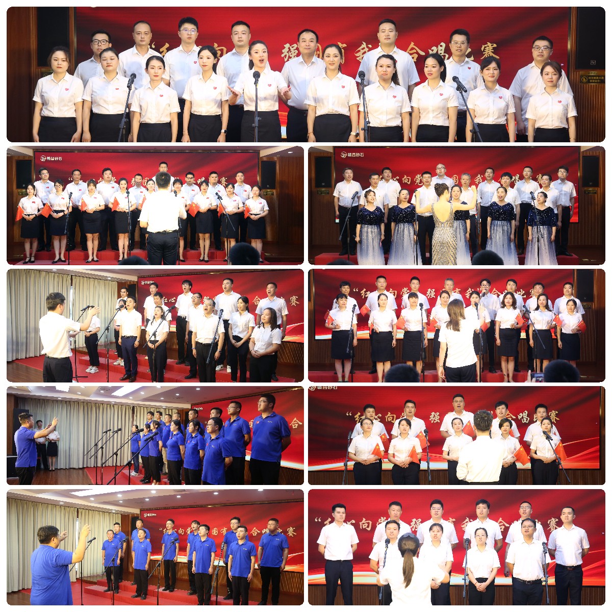 本次大合唱共計有9支隊伍參賽。比賽中,大家用鏗鏘有力、美妙動聽的歌聲,展現(xiàn)著我司員工斗志昂揚、積極向上的精神風(fēng)貌;用《歌唱祖國》、《紅旗飄飄》、《沒有共產(chǎn)黨就沒有新中國》等一首首鐫刻著時代標(biāo)記的紅歌,唱響感恩黨、跟黨走的主旋律。