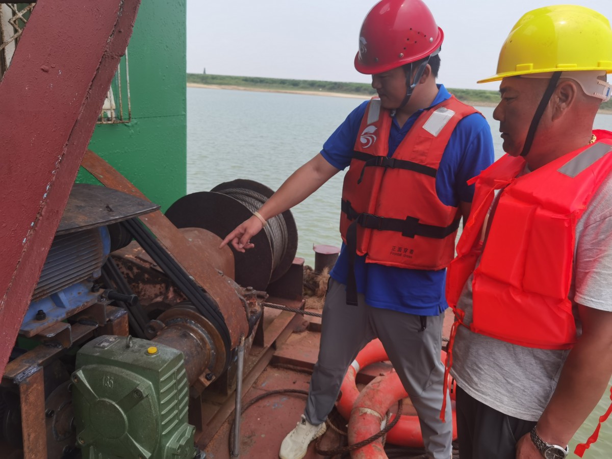 “注意船只之間縫隙,確保作業(yè)安全...”在贛撫尾閭南支王舍料場0156號采砂船上,一線班長張星鵬擦了擦額頭上的汗,一遍又一遍給船上員工叮囑作業(yè)注意事項。汗水順著一線作業(yè)人員黝黑的面頰一直往下流,一頂安全帽、一件救生背心、一瓶藿香正氣水,正是他們酷暑時的標(biāo)配。