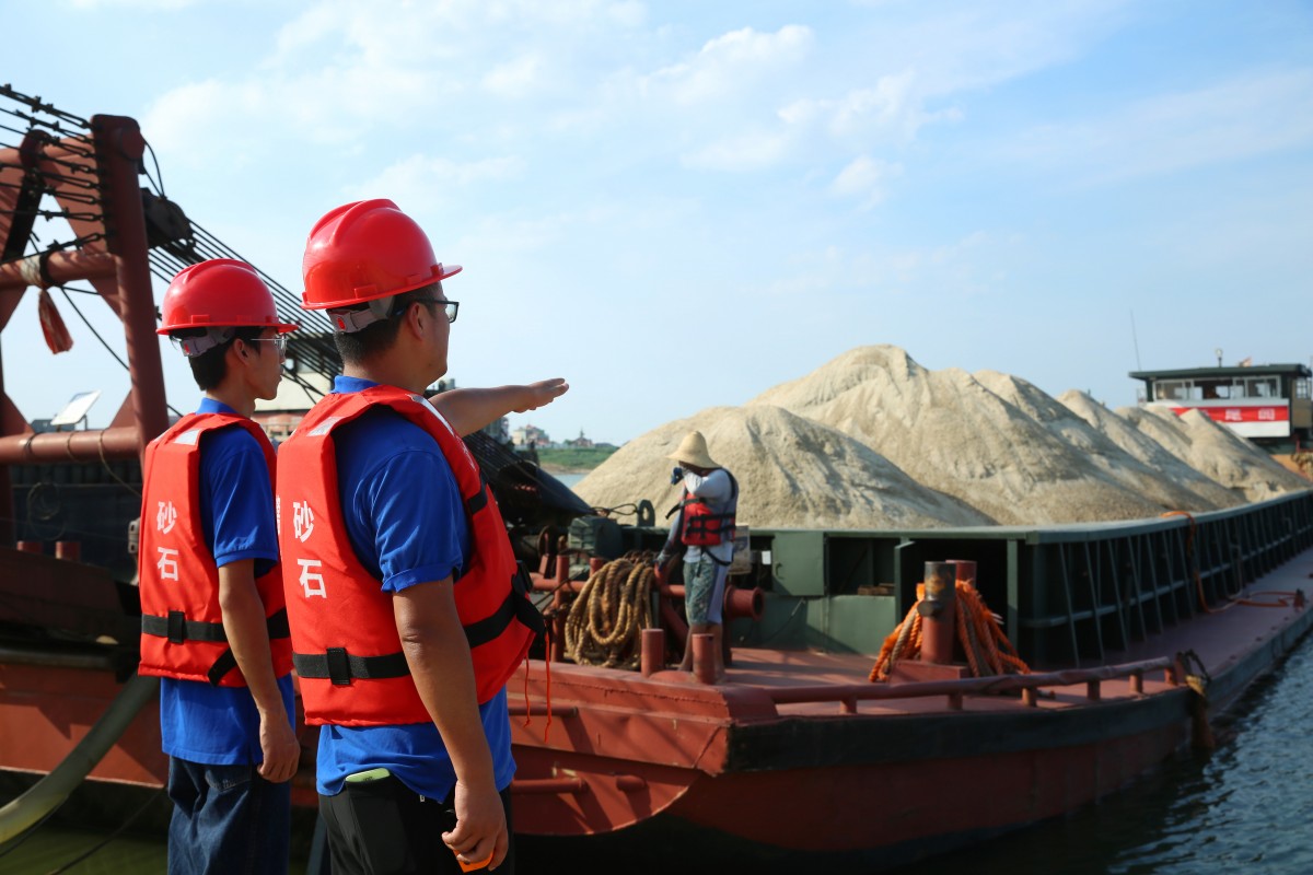 汗水從他們的臉上滑落,流到眼睛里,他們便用手稍微擦一下,繼續(xù)埋頭認(rèn)真工作,直到確認(rèn)數(shù)據(jù)準(zhǔn)確無誤后,才安心拿著工具下了船。滿身熱汗卻捂得緊實(shí),這是砂石一線員工的寫照,在炎熱的夏季,這種“蒸桑拿”式的工作也是他們的常態(tài)工作。