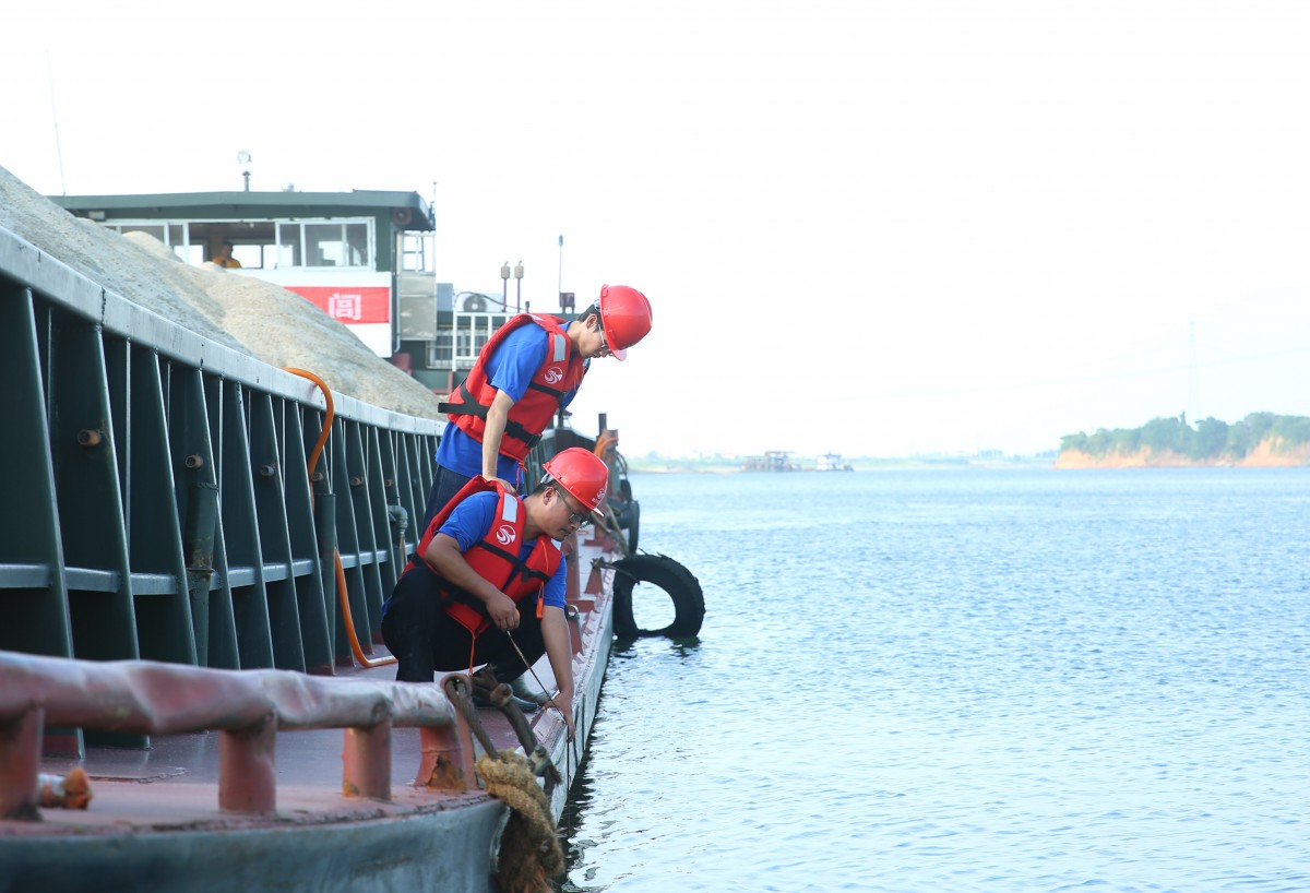 在砂場(chǎng)運(yùn)輸船上,發(fā)貨員陶小毛身穿救生衣,頭戴安全帽,手握皮尺,正在細(xì)致的測(cè)量船只裝載量,豆大的汗珠從他的臉頰上滑落,但絲毫不影響,他依然沉著冷靜的固定皮尺,眼睛緊盯刻度,認(rèn)真把好每一個(gè)關(guān)鍵節(jié)點(diǎn),保證測(cè)量數(shù)據(jù)精準(zhǔn)。“量方這項(xiàng)工作必須具備高度責(zé)任心,測(cè)量是否準(zhǔn)確將直接影響砂場(chǎng)入庫(kù)數(shù)量,關(guān)乎到公司的利益”陶小毛說(shuō)。砂場(chǎng)發(fā)貨員除上船量方工作外,還肩負(fù)著開(kāi)票,維持砂場(chǎng)秩序,統(tǒng)計(jì)銷(xiāo)售數(shù)據(jù),對(duì)接采區(qū)調(diào)度砂石等工作,一天下來(lái)幾乎沒(méi)有休息時(shí)間。