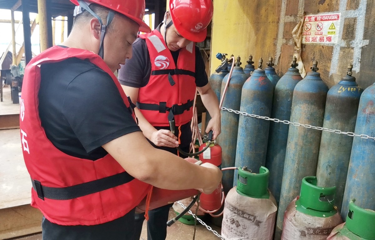 公司開(kāi)采管理中心嚴(yán)格落實(shí)公司制定的“三個(gè)一”檢查機(jī)制,分管中層每周對(duì)開(kāi)采作業(yè)的采區(qū)進(jìn)行安全隱患檢查,其中包括采砂船機(jī)械設(shè)備、運(yùn)力船機(jī)械設(shè)備、消防安全設(shè)備、人員安全的檢查,為保障采砂船人身安全特別要求采區(qū)生活區(qū)、作業(yè)區(qū)分開(kāi),并反復(fù)強(qiáng)調(diào)船員穿戴救生設(shè)備重要性。同時(shí),公司還加強(qiáng)了開(kāi)采前對(duì)采挖船舶的安全檢查工作,如發(fā)現(xiàn)采砂設(shè)備潛在隱患,立即下達(dá)整改通知單,督促船舶在規(guī)定期限內(nèi)整改維修到位,保障開(kāi)采期間設(shè)備安全。