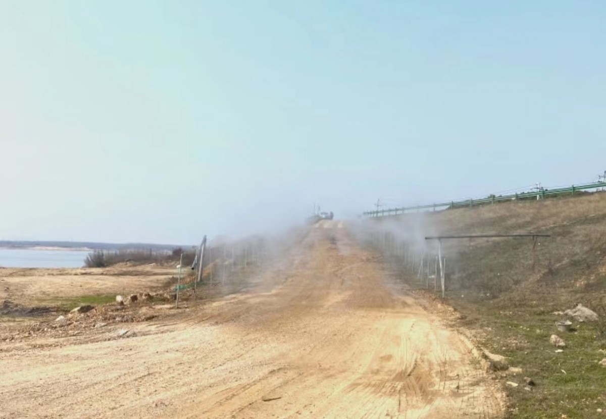為加大降塵力度,以清湖砂場為試點,建設(shè)了噴淋降塵設(shè)備,對砂場進(jìn)場道路、作業(yè)區(qū)等重點部位進(jìn)行噴淋降塵,噴淋降塵覆蓋面廣且在砂場發(fā)貨時間段不間斷作業(yè),對于砂場日常道路揚塵抑制起到了立竿見影的效果。