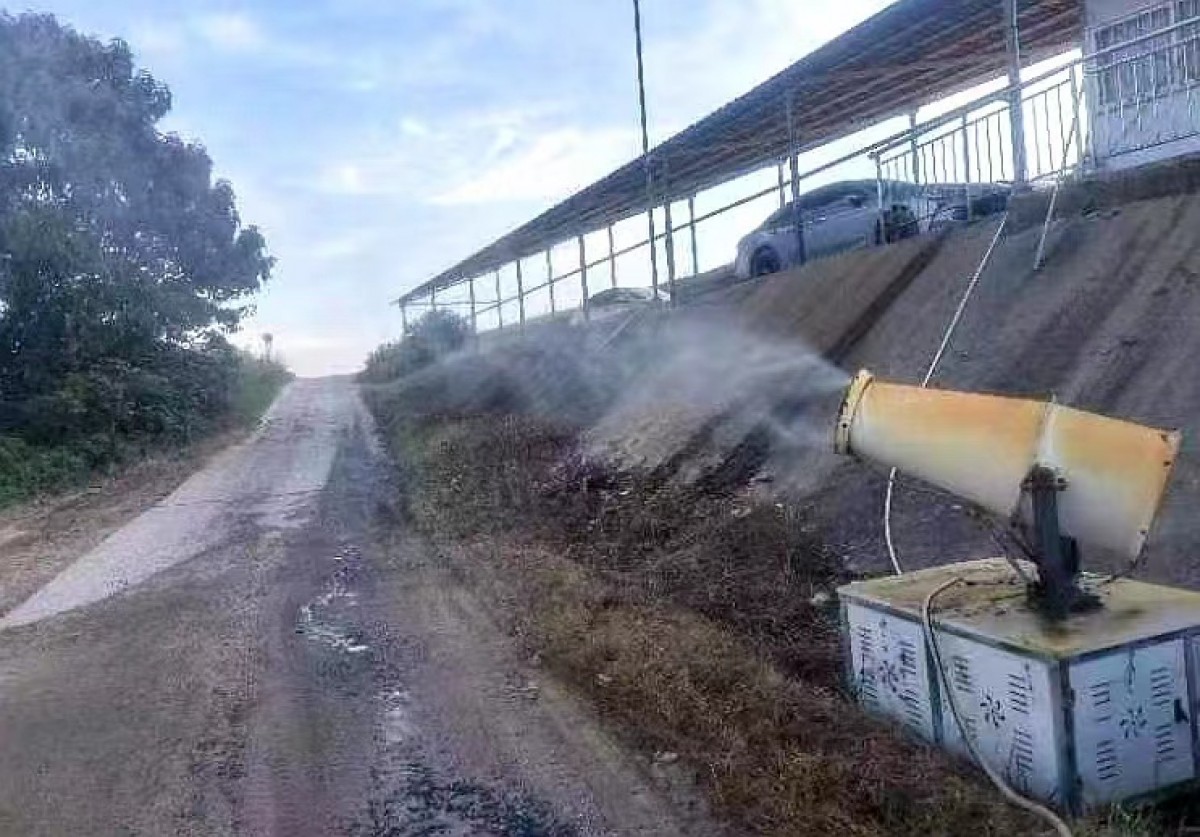 在無條件配備灑水車、噴淋設(shè)備的砂場安裝霧炮機(jī),分早、中、晚三個時間段對砂場進(jìn)出口道路噴灑,場內(nèi)作業(yè)區(qū)域采用人工灑水降塵,天氣干燥炎熱或風(fēng)力較大時,靈活增加噴灑頻次。