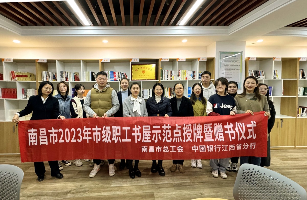12月1日上午,南昌市總工會(huì)宣教部部長(zhǎng)徐立、副部長(zhǎng)劉智穎在南昌贛昌砂石有限公司閱覽室舉行南昌市2023年市級(jí)職工書(shū)屋示范點(diǎn)授牌暨贈(zèng)書(shū)儀式。南昌贛昌砂石有限公司工會(huì)主席、副總經(jīng)理胡蓉,工會(huì)辦公室負(fù)責(zé)人尹志香及部分職工代表參加授牌儀式。