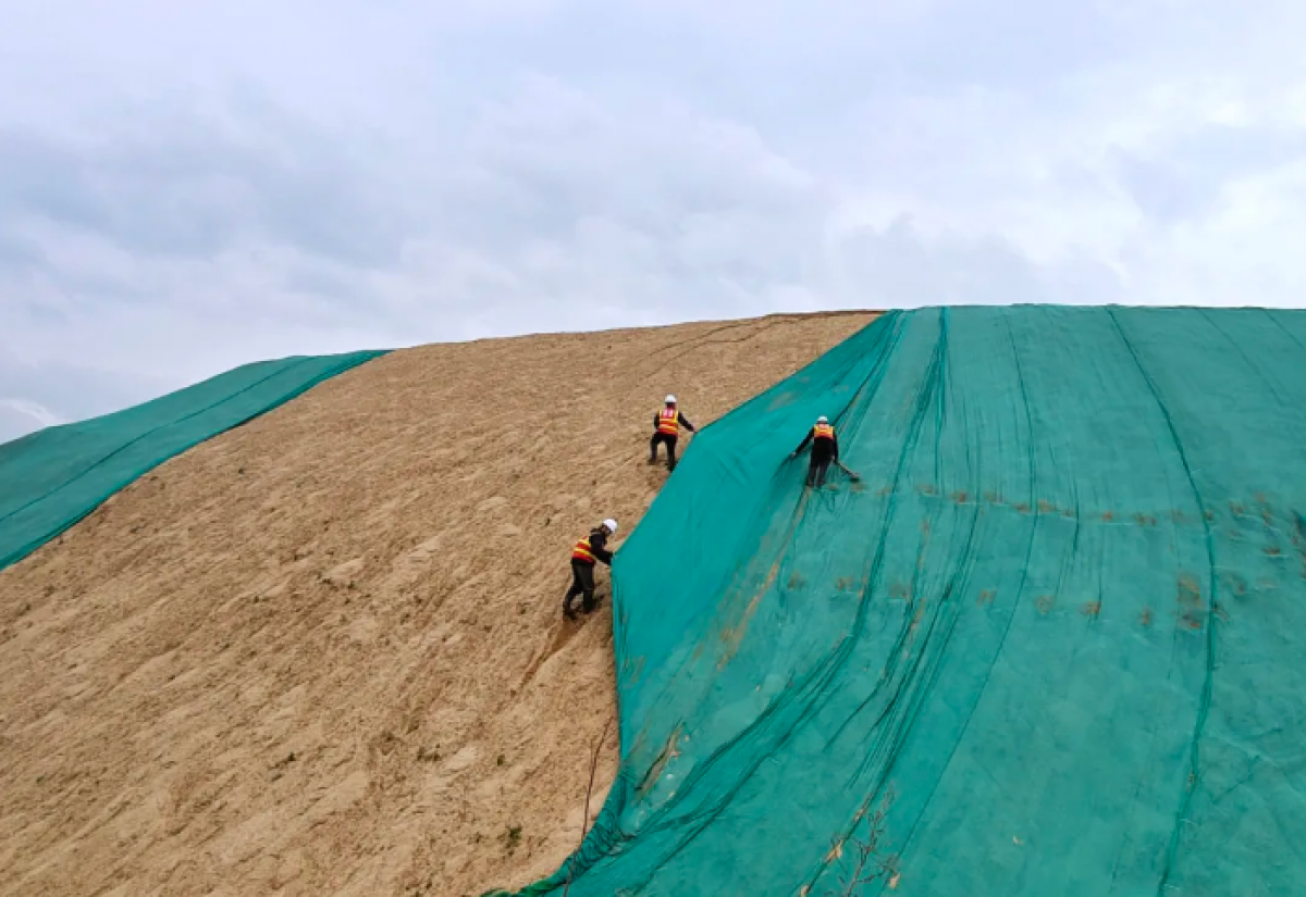 為減少強(qiáng)降雨大風(fēng)天氣造成砂場資源流失,高新銷售中心密切關(guān)注雨情的發(fā)展趨勢,監(jiān)測水位上漲情況;積極組織員工在停雨間隙,對砂場砂石覆蓋防塵網(wǎng),降低砂石資源流失,保障公司財產(chǎn)安全。