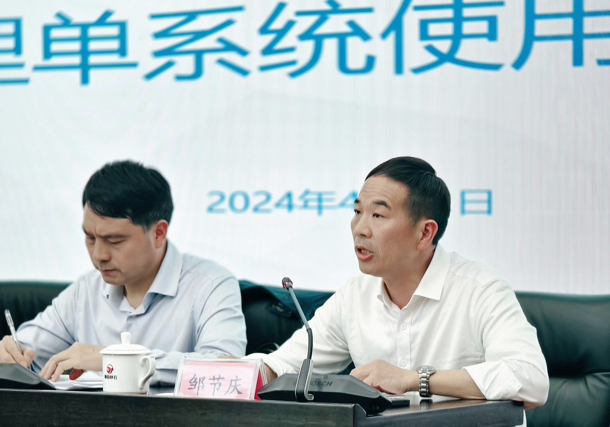 市水利局政策法規(guī)科高工鄒節(jié)慶傳達了水利部、省水利廳相關文件精神,并解讀了全市河道砂石電子采砂采運管理及相關政策要求。