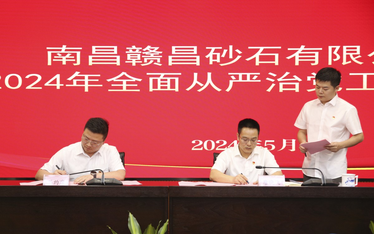 會上,公司黨委書記、董事長唐曉飛與公司黨支部書記代表、負責人代表分別簽訂了《南昌贛昌砂石有限公司2024年全面從嚴治黨主體責任書》《南昌贛昌砂石有限公司2024年黨風廉政建設目標責任書》。
