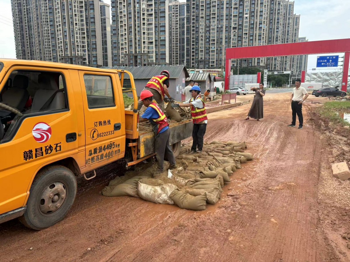 受強降雨影響,位于紅谷灘區(qū)贛州大街交叉口通往馬咀山公園的一條約1公里長的便道路面出現(xiàn)大面積的泥濘坑洼、積水情況,最深處近半米深,影響周邊群眾出行和車輛正常行駛,存在一定的交通安全隱患,6月21日,贛昌砂石公司紅谷灘區(qū)配送站結合“為群眾辦實事”實踐活動,組織配送站在崗工人使用礫石、砂袋對道路進行修整。