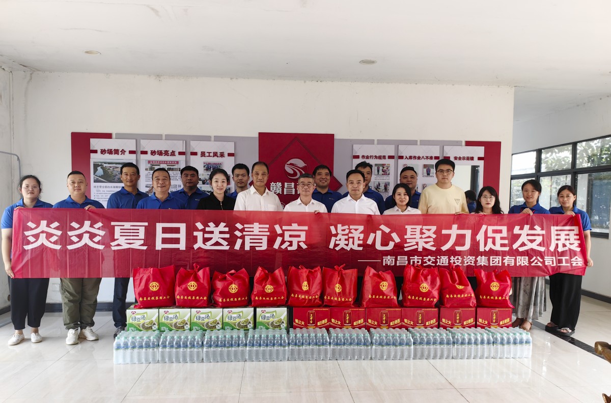 8月1日,南昌交投集團(tuán)高管胡勁松一行赴贛昌砂石公司經(jīng)開銷售中心白水湖堆砂場(chǎng)看望慰問堅(jiān)守在一線的職工們,為他們送去防暑降溫物資。南昌交投集團(tuán)綜治安全部部長(zhǎng)涂珂,贛昌砂石公司黨委委員、副總經(jīng)理張軍茂(主持經(jīng)理層工作),黨委委員、副董事長(zhǎng)陳杰,工會(huì)主席、副總經(jīng)理胡蓉等相關(guān)人員陪同。
