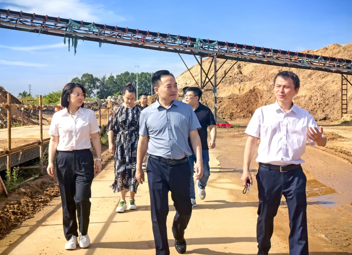在??谑猩鷳B(tài)環(huán)境建設(shè)投資有限公司,張軍茂一行實地參觀了工程砂石堆料場、加工廠及收儲項目現(xiàn)場,詳細了解工程砂石收儲流程、深加工流程及經(jīng)營管理模式,隨后召開座談會,就工程砂石政策支持、處置流程、項目監(jiān)管及實際工作開展中存在的問題等方面開展了交流探討;在臨高縣基礎(chǔ)建設(shè)發(fā)展控股有限公司,張軍茂一行與企業(yè)相關(guān)負責(zé)人就工程砂石的處置流程,處置收益分配,處置工作的痛點、難點等內(nèi)容進行了深入探討。